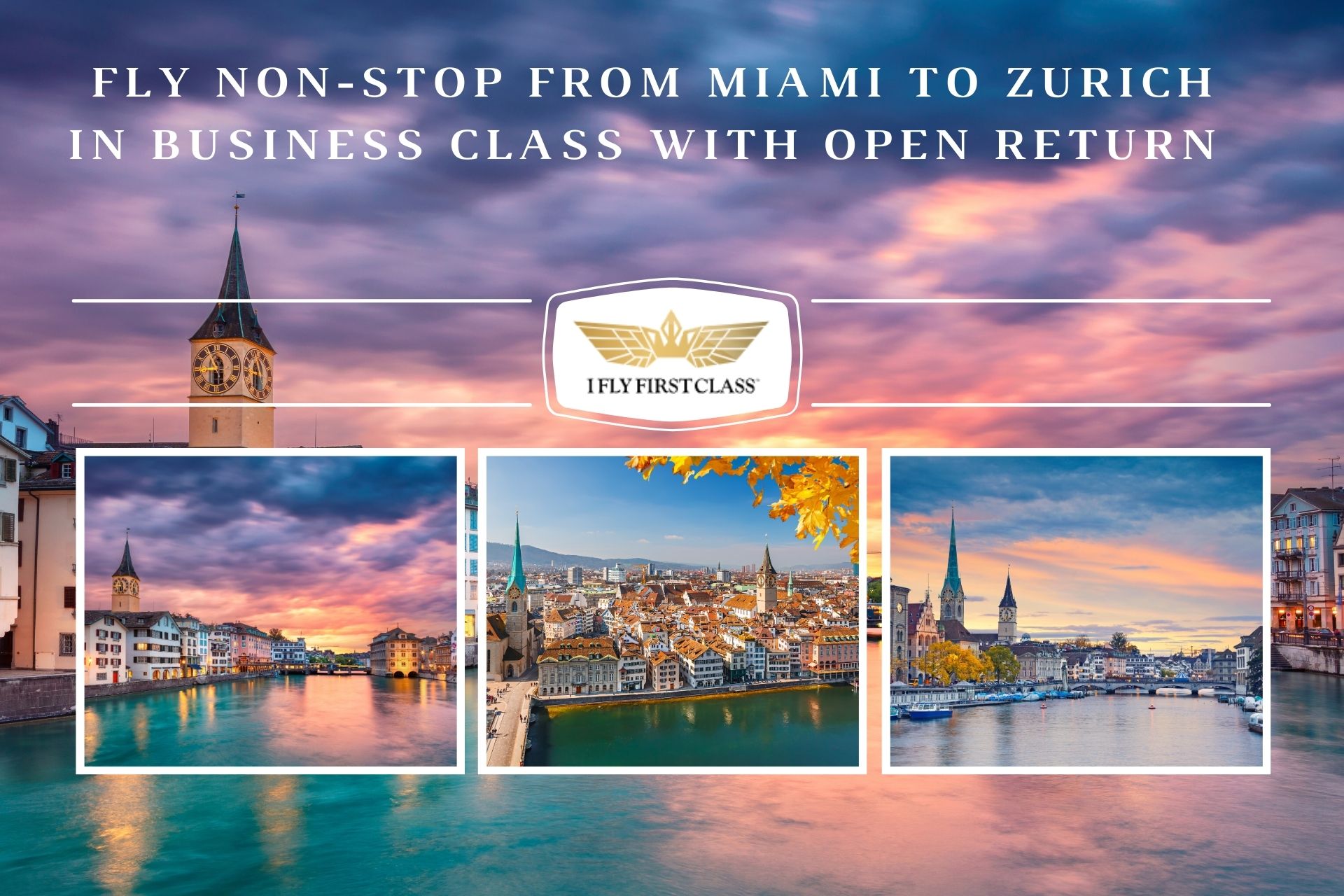 Iflyfirstclass.com provides exclusive access to discounted business class tickets, including non-stop flights from Miami to Zurich and flexible open-return options. Their travel experts work directly with airlines and fare systems to secure the best available prices.